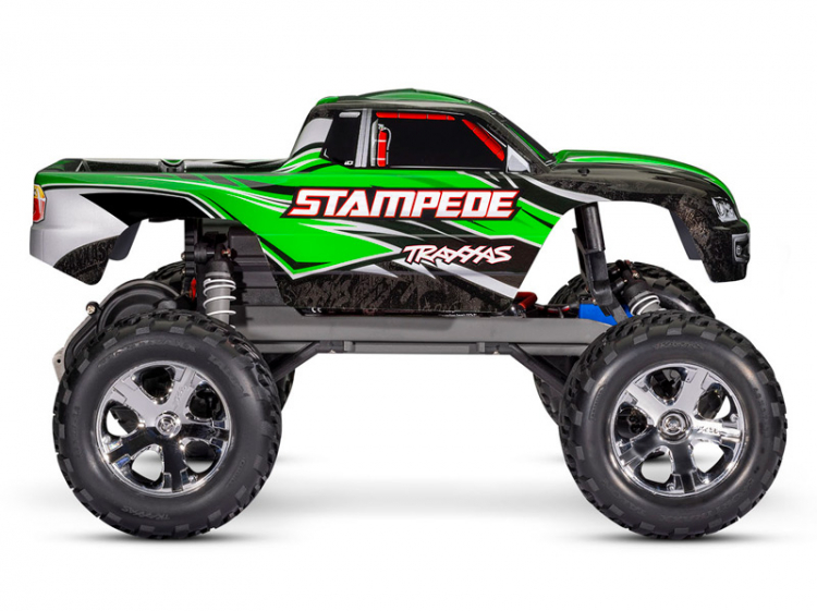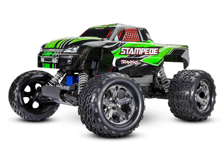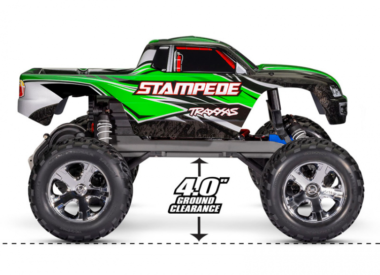 Traxxas Stampede® XL-5™ Rock-Crushing Torque—And Waterproof!Stampede’s legendary ruggedness has made its name synonymous with off-road fun. With a top speed of 30+ mph* and drive-over-anything ground clearance, Stampede rips through grass and powers over curbs. Pour on the throttle and the Titan® motor’s massive torque raises the front wheels skyward for dirt-roosting wheelies and high-power jumps. Mud, puddles, and snow don’t stand a chance against this high-octane monster truck thanks to Traxxas’ waterproof electronics. Add more excitement to your RC adventures with the quality and performance of the Traxxas Stampede.
