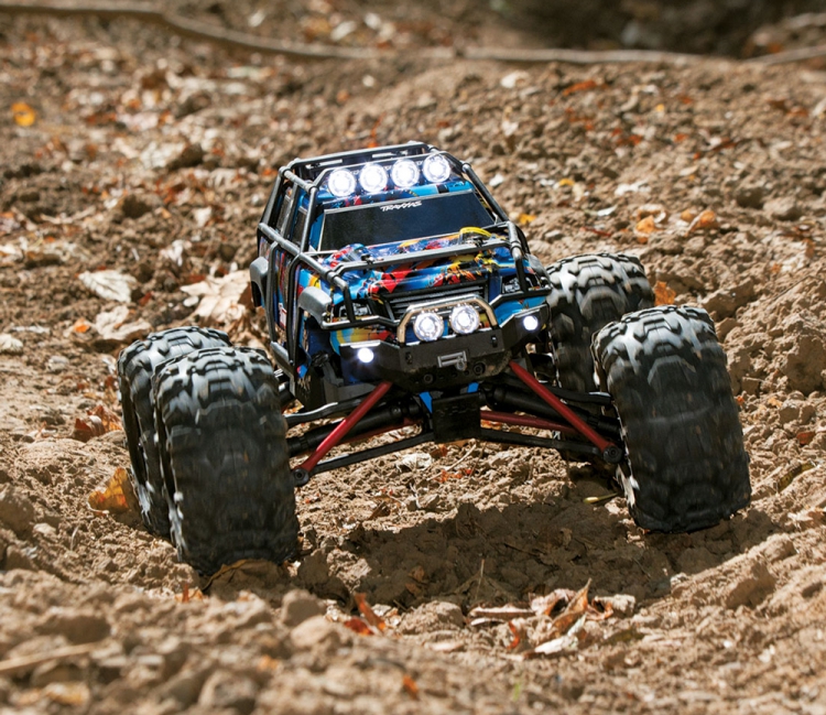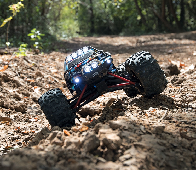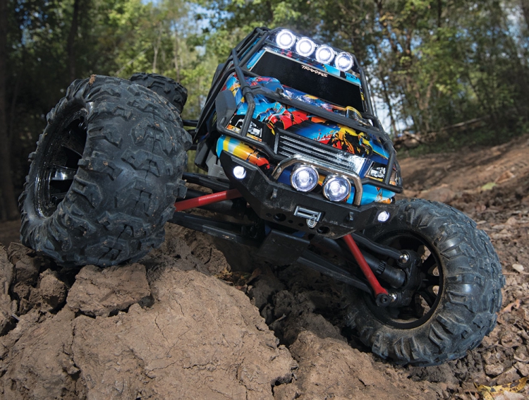 Leave it to Traxxas to stuff a 1/10 scale motor into a 1/16 scale truck! Summit’s mighty Titan® 12T 550 motor delivers nearly limitless torque for tire-scorching acceleration and all-terrain capability. With massive suspension travel, extreme Titan power, and 4-wheel drive traction, Summit tackles impossible terrain. Traxxas engineers combined all the big Summit's go-anywhere versatility with waterproof electronics to make even your wildest adventures possible. Summit’s bright LED lights blaze a trail, making night runs more exciting than ever. The 1/16 Summit's just-right size lets you enjoy hours of off-road fun anytime, anywhere!
