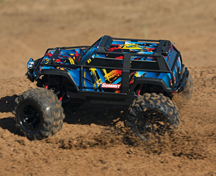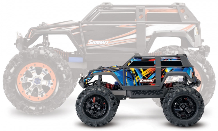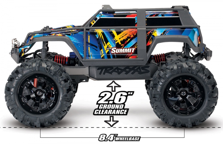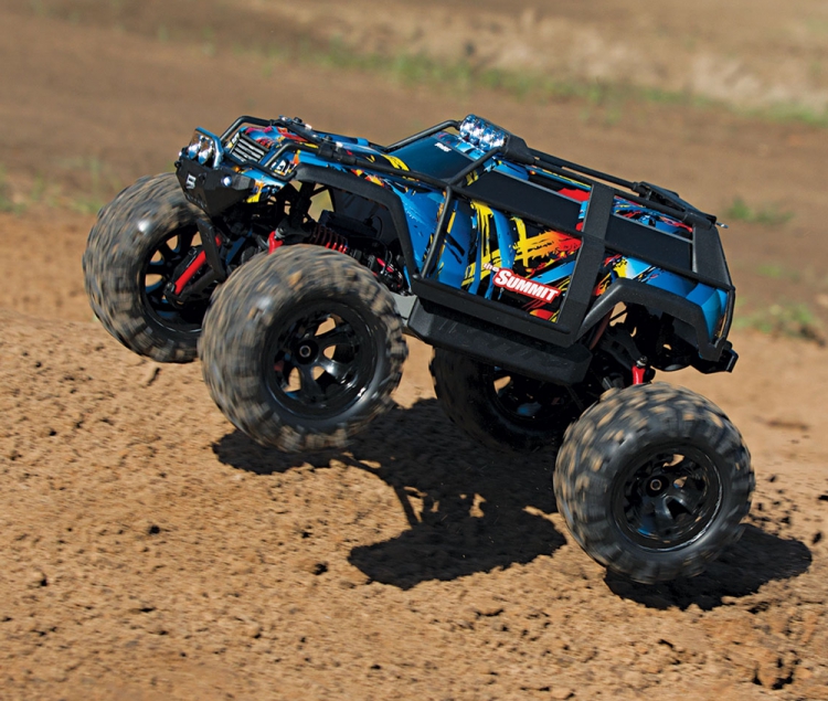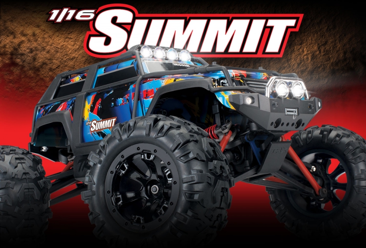 The 1/16 Summit comes fully assembled with TQ 2.4GHz radio system, Titan 12-T power, pre-painted body, pre-glued tires, detailed instructions and a Traxxas NiMH battery and DC charger. Only Traxxas could pack this level of performance, innovation, and value into a Ready-To-Race package with the quality you expect. Traxxas backs the Summit and all of our products with top-notch support that is second to none. A staff of skilled representatives is on-hand to answer your questions via phone, website, or e-mail. Unmatched parts support allows the Summit to be serviced with parts and support from thousands of hobby dealers worldwide. Traxxas goes the extra mile to ensure that your RC experience is easy and fun (and fast!).