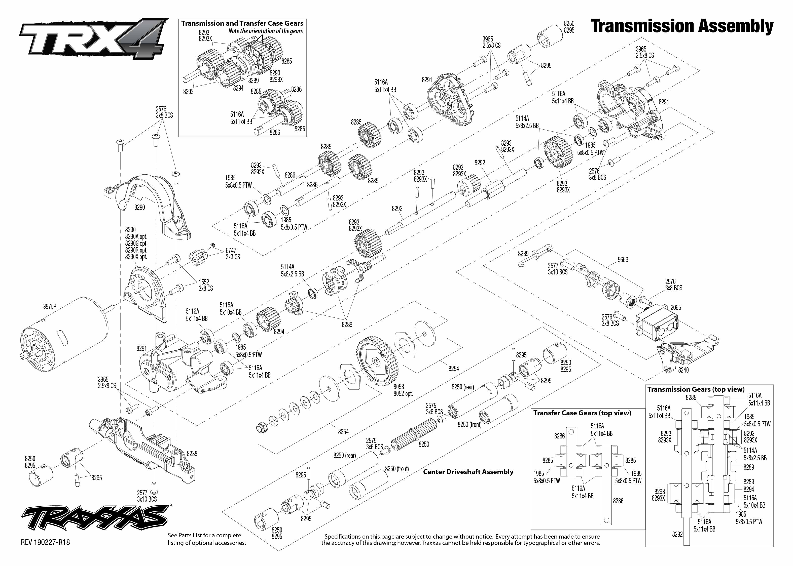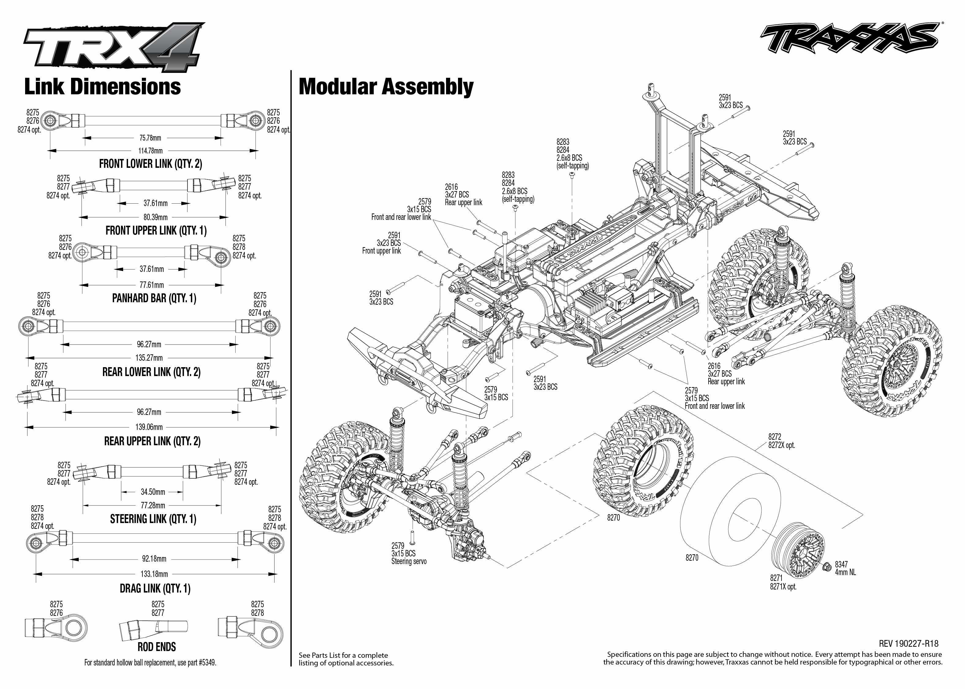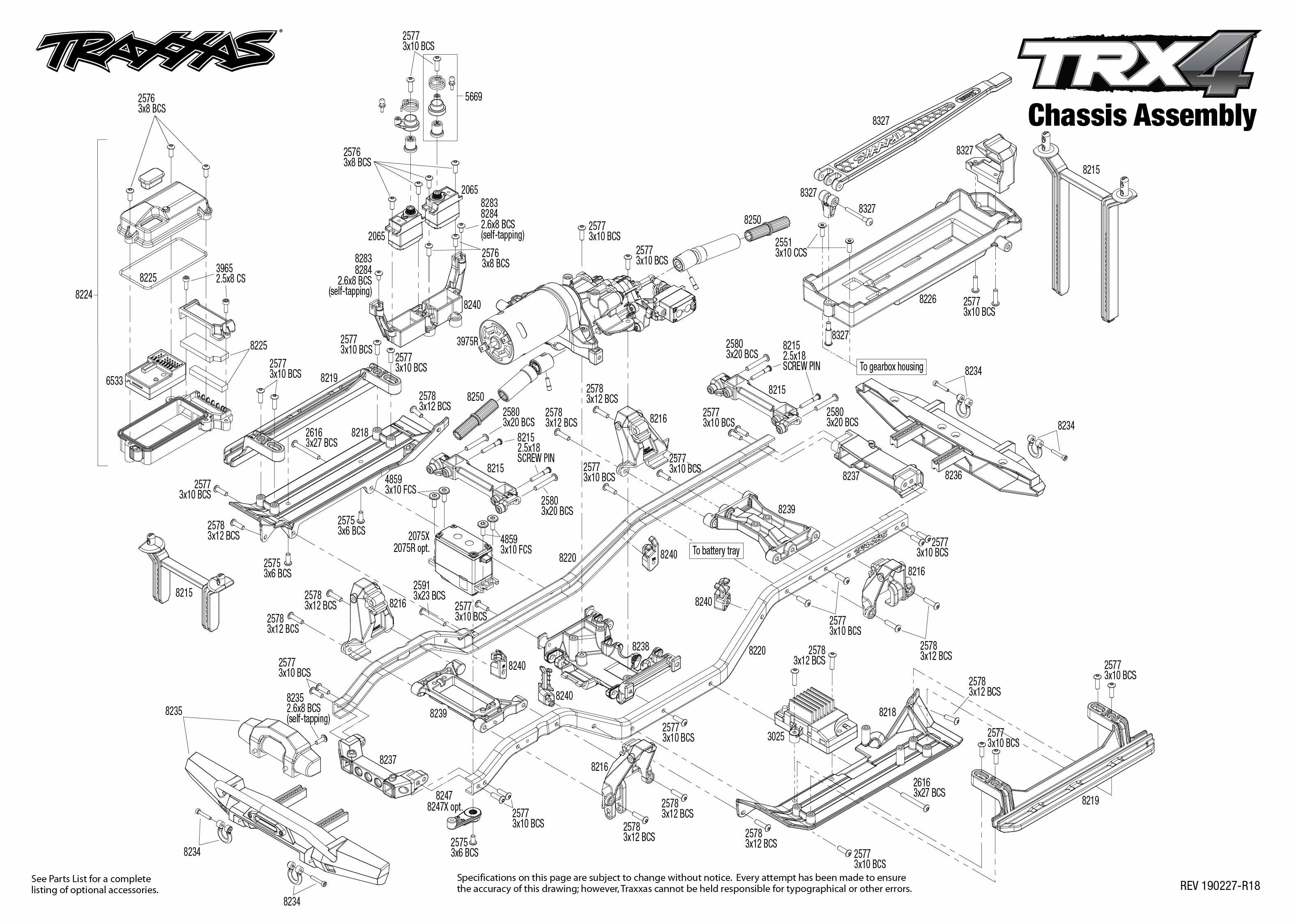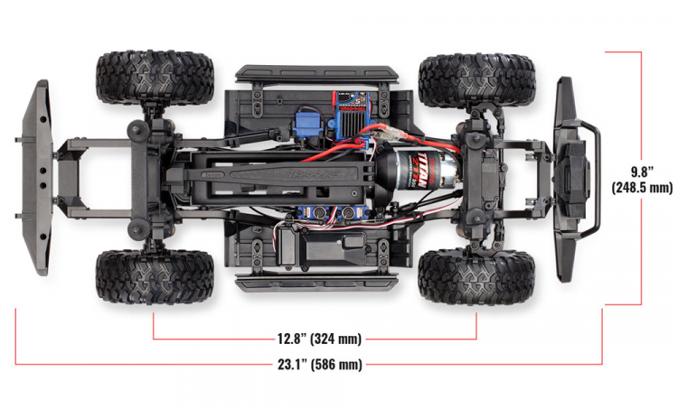 - Batterier: TRX-4 accepterar många olika storlekar av NiMH (4–7 celler) och LiPo (2s–3s) batterier.