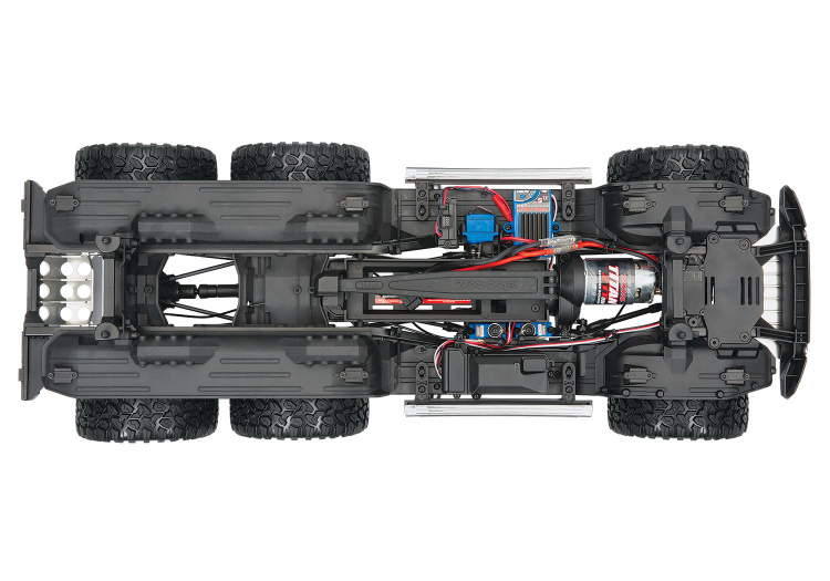 - Batterier: TRX-6 accepterar många olika storlekar av NiMH (4–7 celler) och LiPo (2s–3s) batteripaket med Traxxas iD™ kontakt
