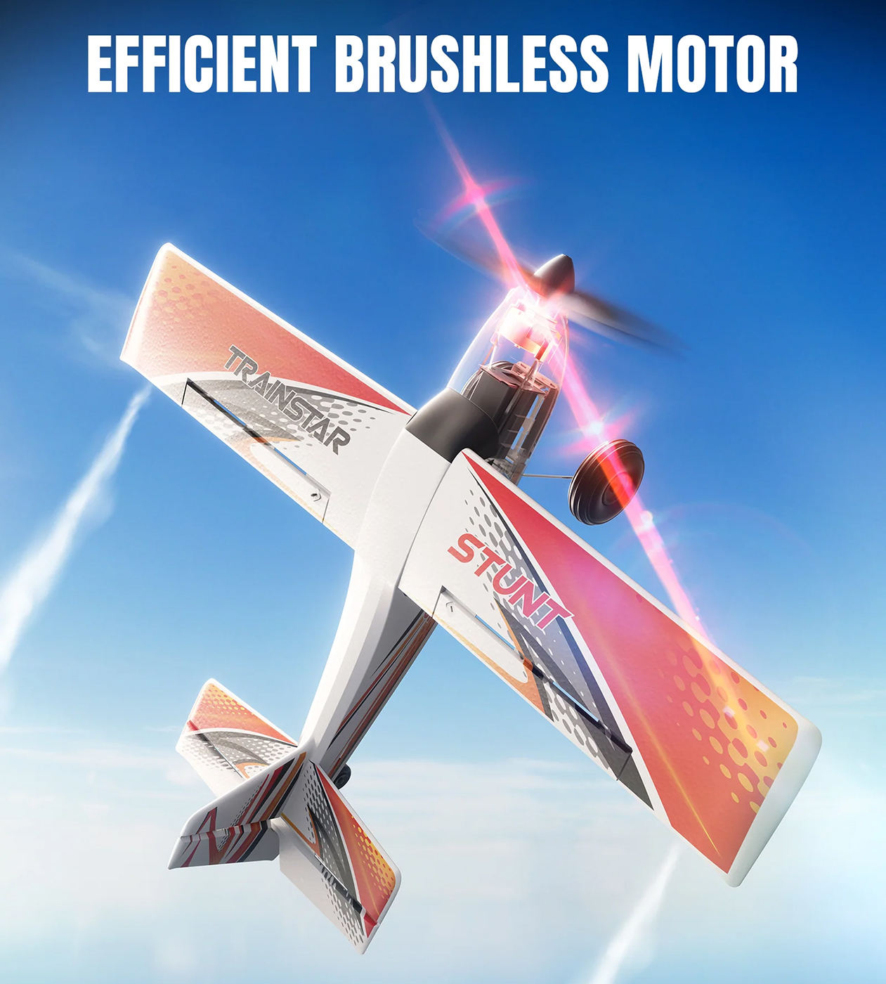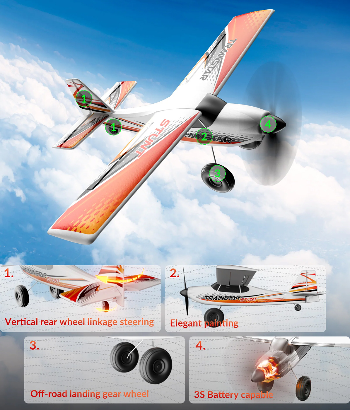 VOLANTEXRC Brushless 4CH 500MM TrainStar STUNT Remote Control Airplane Fighter RTF with 6-Axis Gyro, 3 Modes & Aerobatics, 2.4GHz Radio Controlled Aircraft for +14 year Beginners & Adults. Red/Orange.Longer Flying, More Fun
