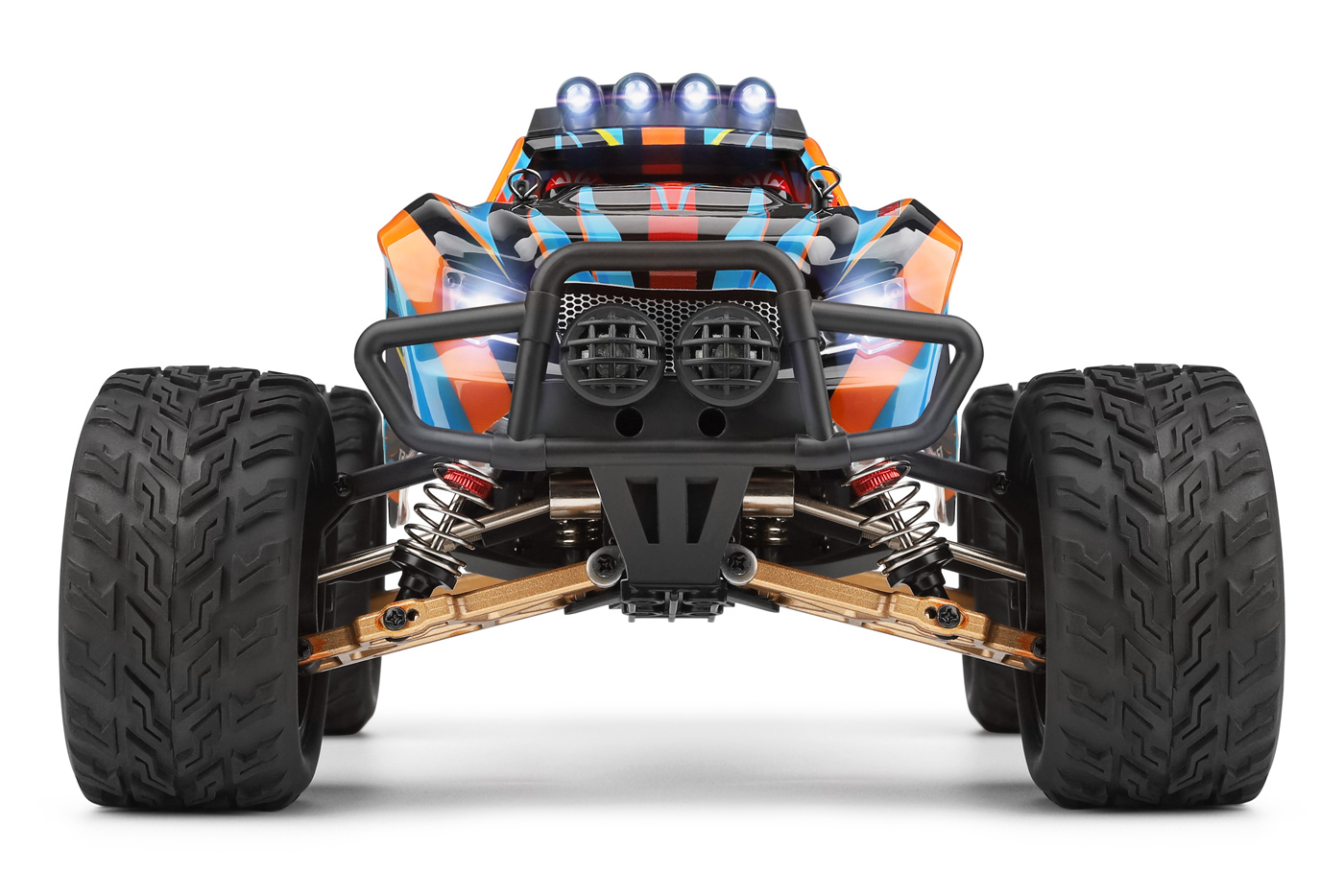 WL 104009 passar för snabb körning på grus, jord och andra fasta underlag. Den är ett bra val för dig som vill ha en större 1:10-modell med förstärkt drivlina.