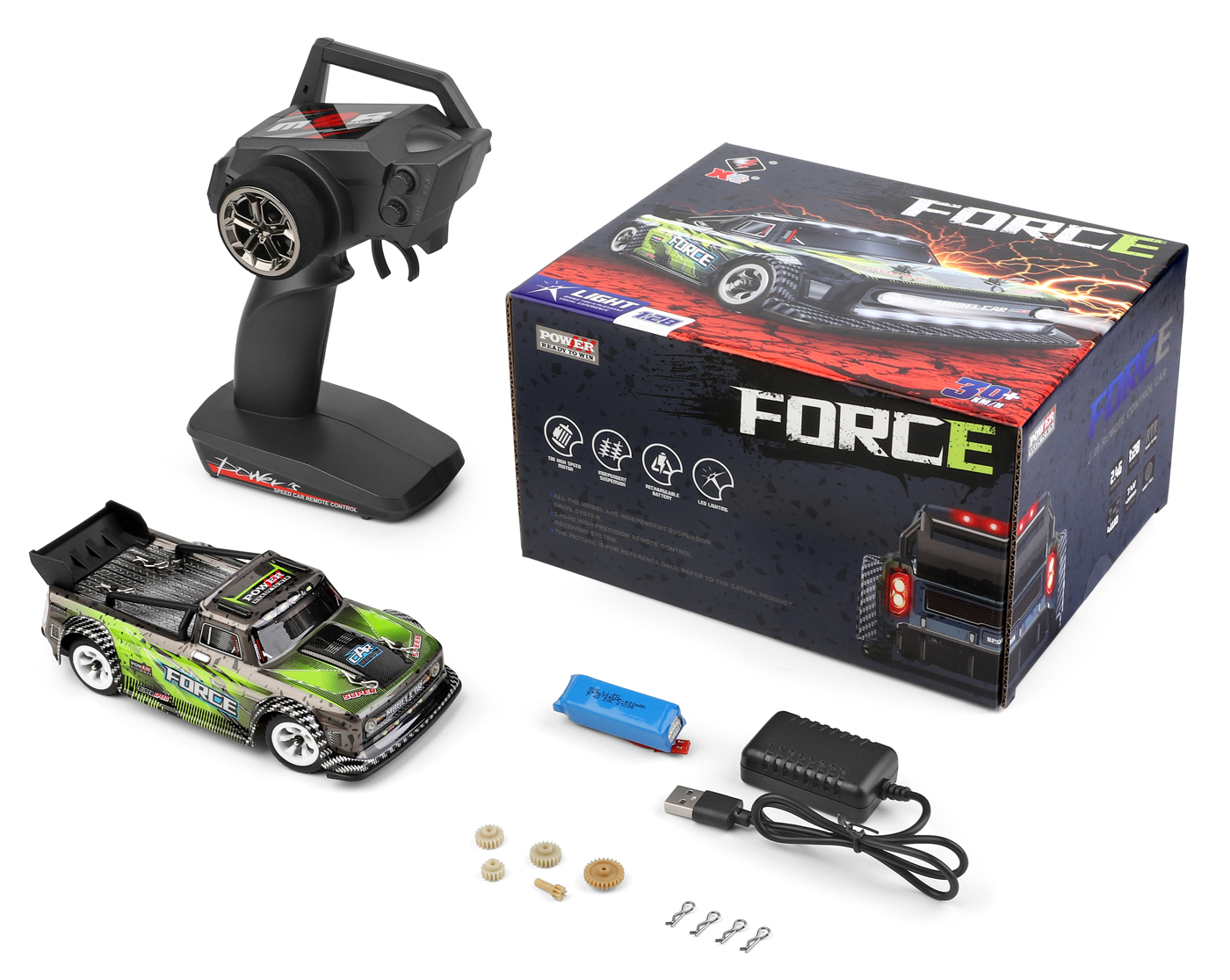 Modellen är utrustad med en borstad 130-motor och digital styrservo för stabil och responsiv kontroll. Den levereras RTR (Ready To Run), vilket innebär att sändare, batteri och laddare ingår.