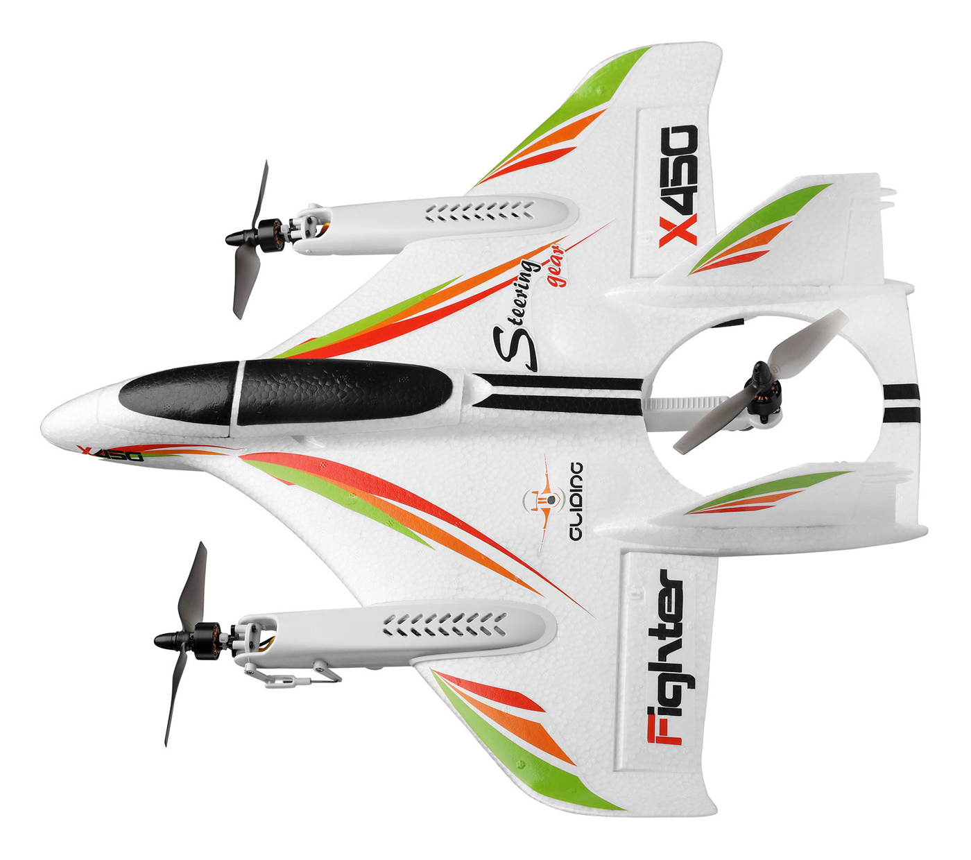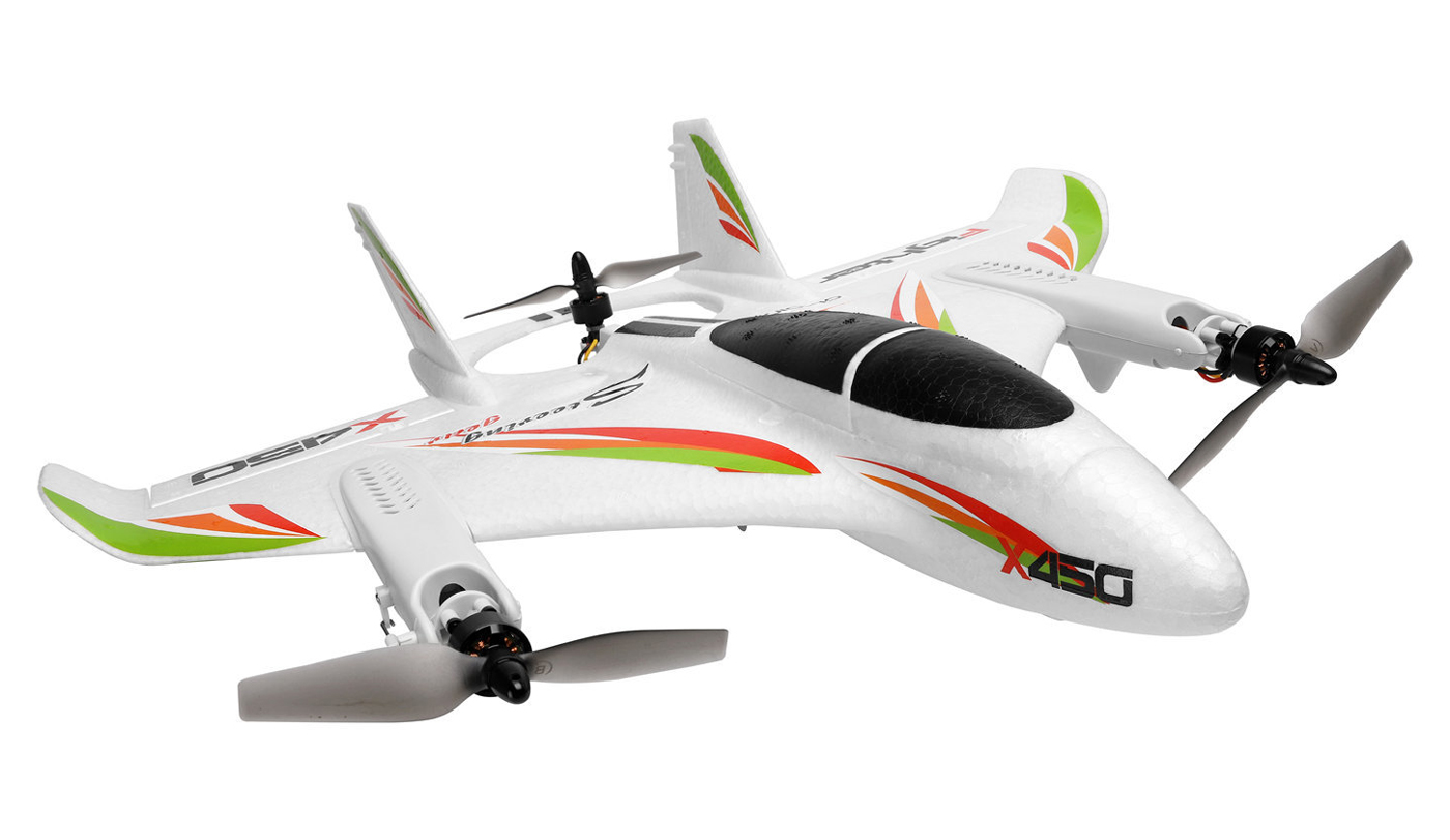 XK X450 är ett VTOL-flygplan (Vertical Takeoff and Landing) som kombinerar egenskaper från multirotor och traditionellt fastvingeflyg. Det innebär att modellen kan starta och landa vertikalt som en drönare, hovra stilla i luften och sedan växla över till effektiv horisontell flygning som ett flygplan.